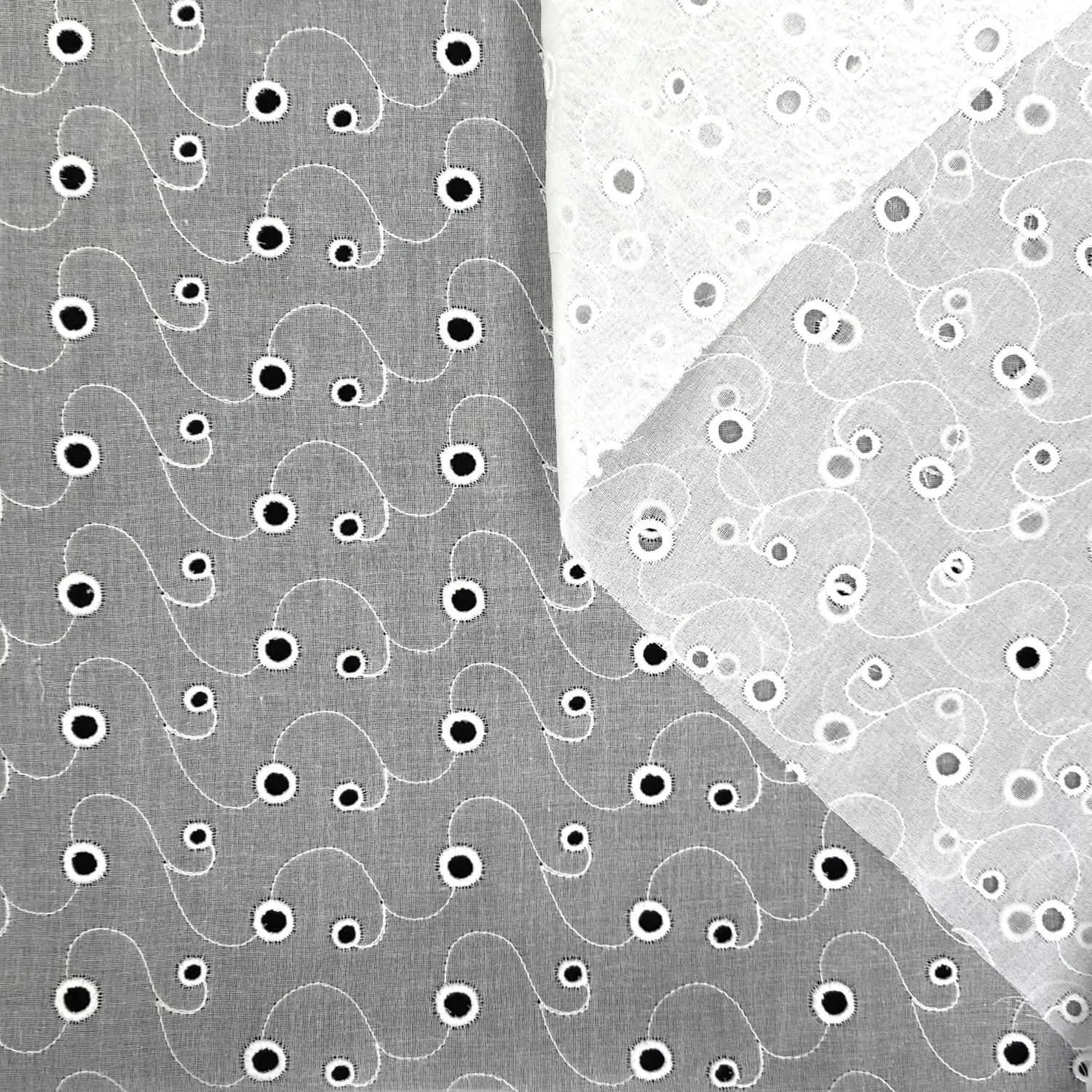 Light Dry & Fluid Broderie Anglaise On Cotton Voile. This fabric is a deadstock from an Exclusive Luxury Maison and is located in our warehouse in France.