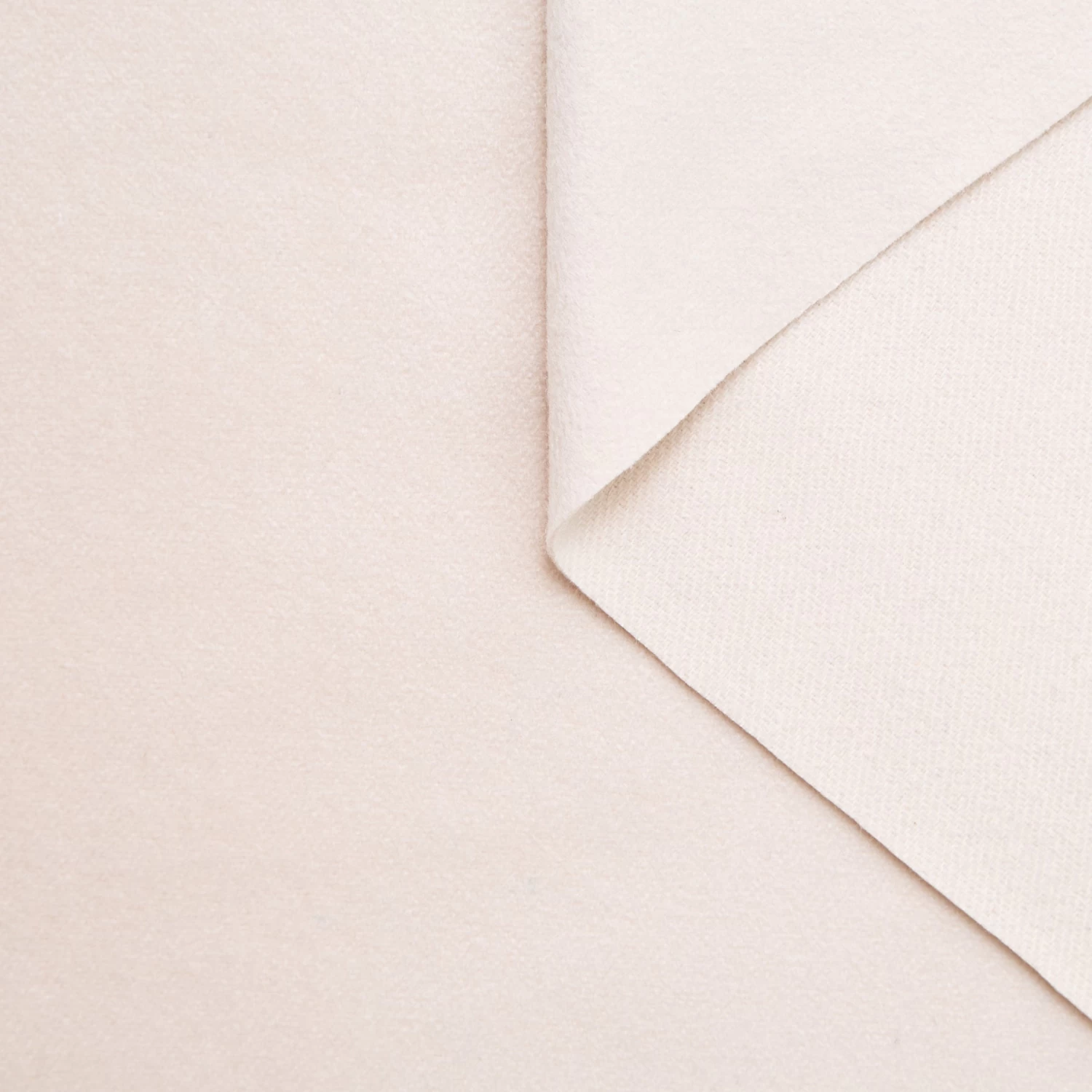 Soft & Medium Compact Brushed Cashmere Drap. The ‘Salute’ colour is brushed on both sides while the ‘Perfectly Pale’ colour is brushed only on the front side. This fabric is a deadstock from a Luxury Maison and is located in our warehouse in France.