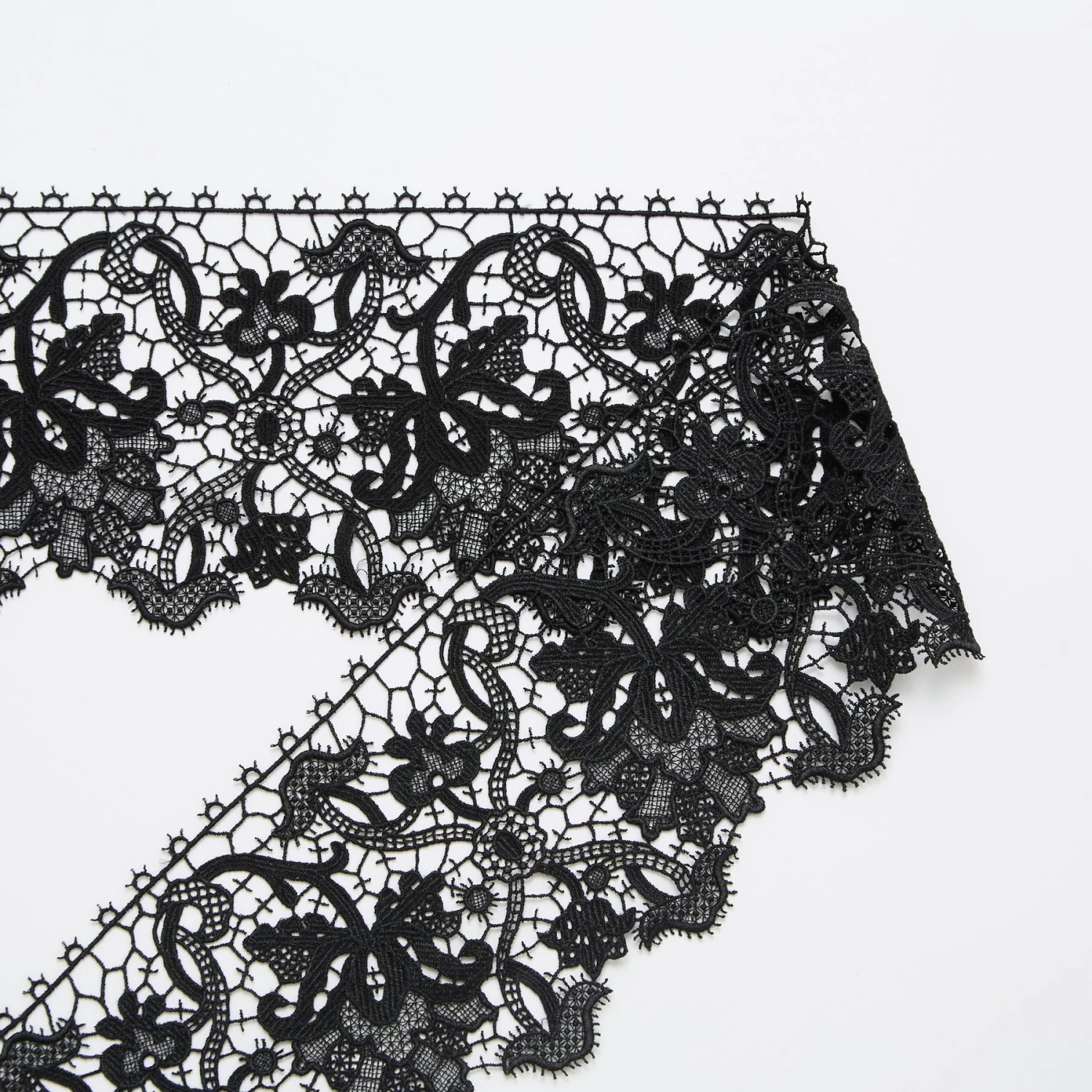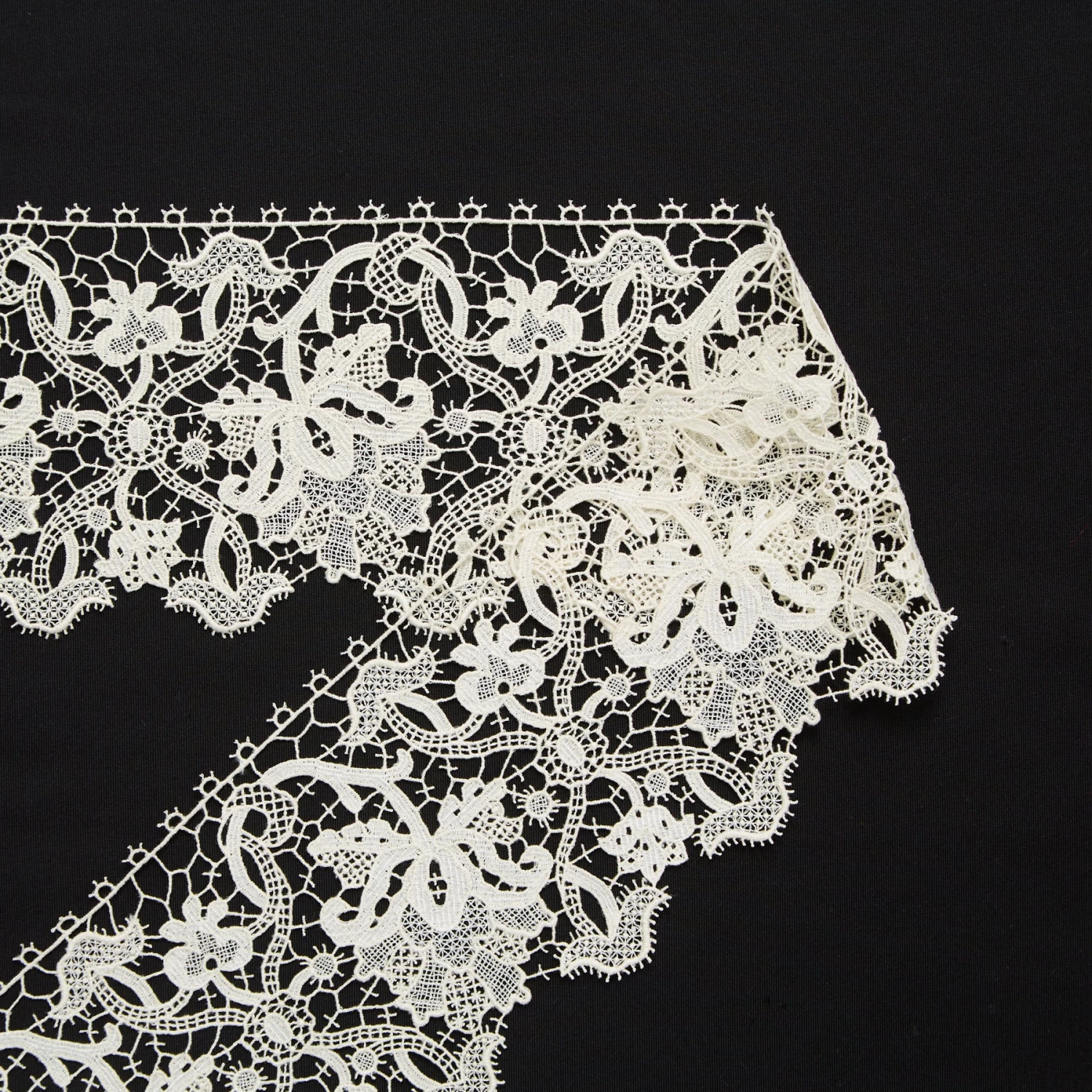 Dry & Medium Compact Floral Guipure Galloon 11cm. This fabric is a deadstock from a Luxury Maison and is located in our warehouse in France.