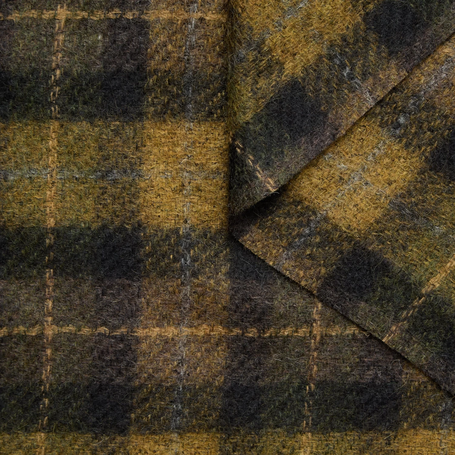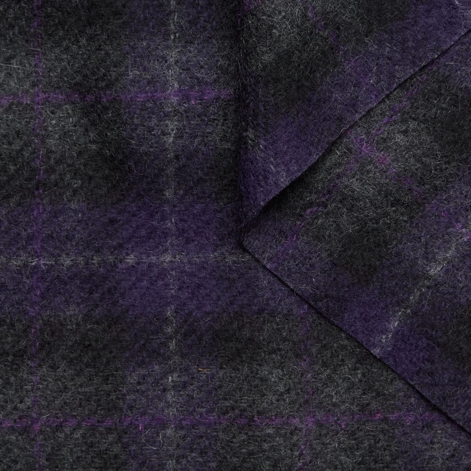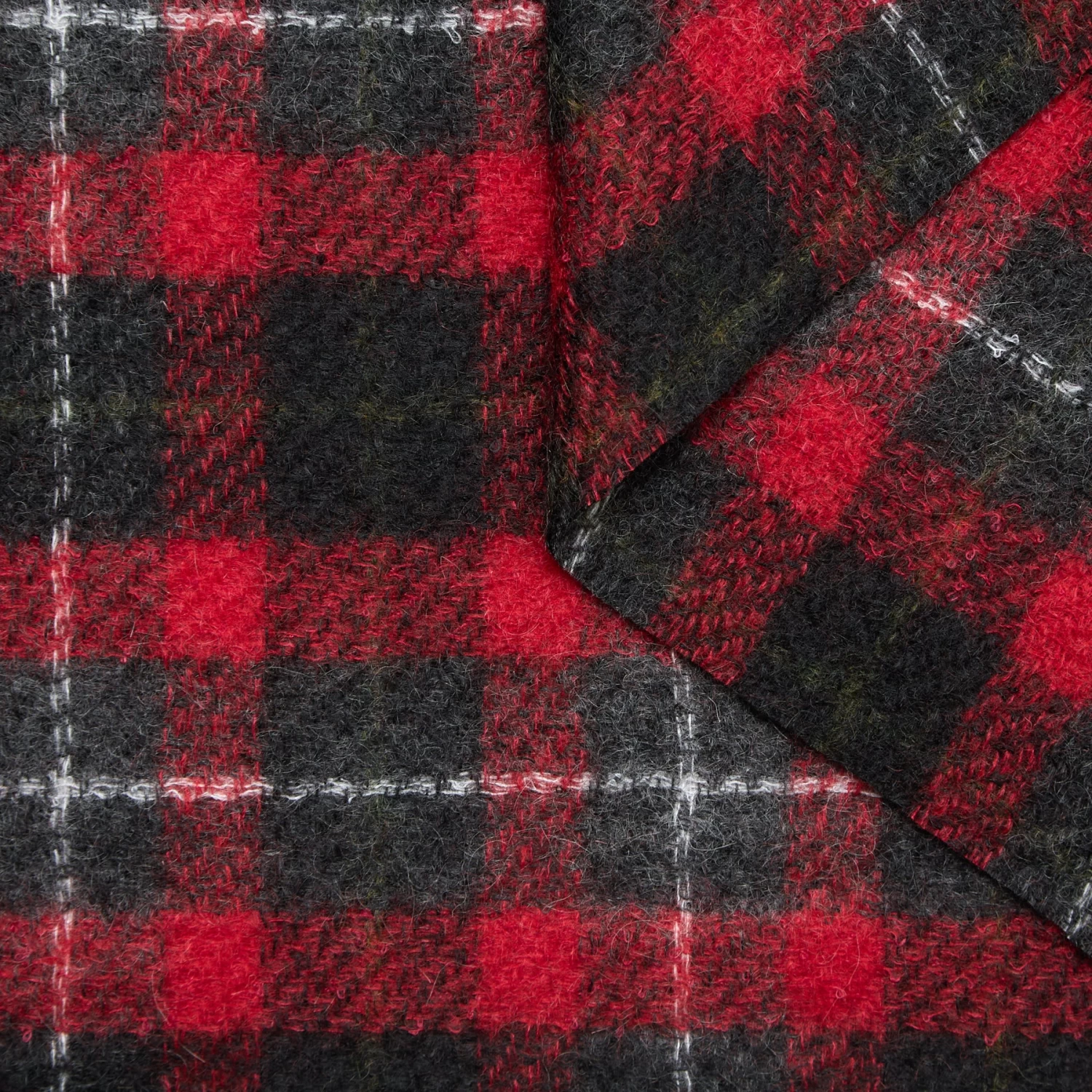 Dry & Medium Compact Fluffy Mohair Tartan RWS. This fabric is a deadstock from a Luxury Maison and is located in our warehouse in France.